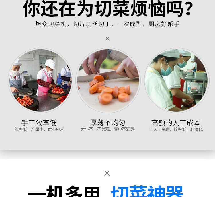 1、一機多用,可切葉菜切片、絲、段等。