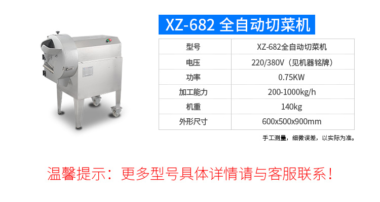 XZ-681多功能切菜機,本設(shè)備可切葉菜可切片、絲、段等,葉菜類,切割尺寸: 1 - 60mm 可以調(diào)整,適用客戶群:食品廠,凈菜加工;學(xué)生營養(yǎng)餐,餐飲連鎖,中央廚房,企業(yè)食堂等。