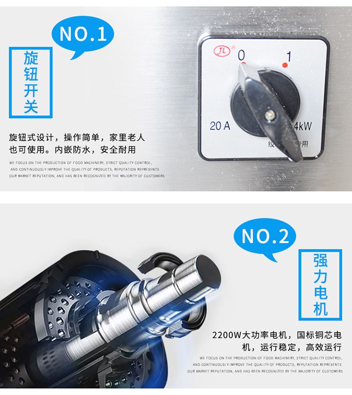 XZL-22A絞肉機(jī)吸取同行之優(yōu)點(diǎn),改進(jìn)新型絞肉切肉機(jī)械,它能切豬肉、羊肉、牛肉、魚(yú)及其它各種肉類(lèi)、所切肉片厚度適中切片效率高,是餐廳、賓館、酒樓、單位食堂等絞肉切肉的理想機(jī)械,該機(jī)外形獨(dú)特,操作方便,維修簡(jiǎn)單,工作效率高,在同行業(yè)中處領(lǐng)先地位,與食物接觸部分均采用不銹鋼制造符合食品衛(wèi)生標(biāo)準(zhǔn)。