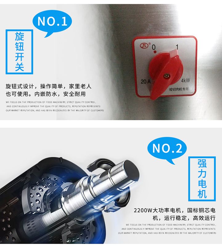 XZL-32A單絞機(jī)吸取同行之優(yōu)點(diǎn),改進(jìn)新型絞肉切肉機(jī)械,它能切豬肉、羊肉、牛肉、魚及其它各種肉類、所切肉片厚度適中切片效率高,是餐廳、賓館、酒樓、單位食堂等絞肉切肉的理想機(jī)械,該機(jī)外形獨(dú)特,操作方便,維修簡(jiǎn)單,工作效率高,在同行業(yè)中處領(lǐng)先地位,與食物接觸部分均采用不銹鋼制造符合食品衛(wèi)生標(biāo)準(zhǔn)。