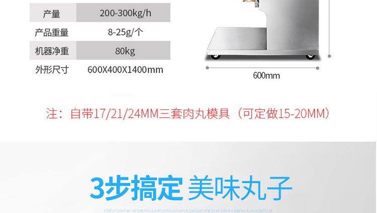 用于制作豬肉丸、魚肉丸、牛肉丸、雞肉丸、貢丸等各種肉丸。