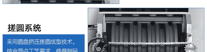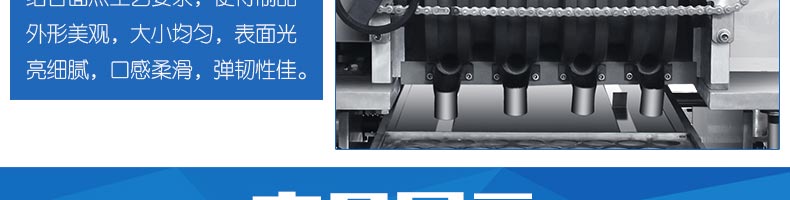 ◆采用圓盤擠壓搓圓技術,結合面點工藝要求,使得制品外形美觀,大小均勻,表面光亮細膩、口感柔滑,彈韌性佳;